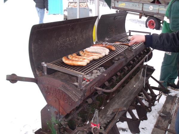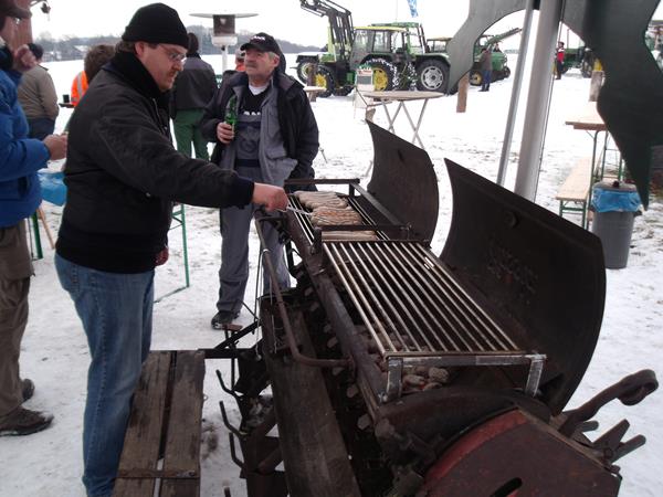 Für Verpflegung war ebenfalls gesorgt. Kurios war auch der Bratwurstgrill, der in seinem ersten Leben eine alte Sähmaschine war. Diese Kuriosität ordnete ich dem Ober-Beerbacher Herbert Ludwig zu, der auch den Odenwälder Teilemarkt im Schuldorf Bergstrasse organisiert und mich bei der Gelegenheit schon darauf vorbereitet hat, dass 2011 dort eine Sonderausstellung UNIMOG und MB-TRAC stattfindet.Er wird sich aber noch mal bei Klaus melden.